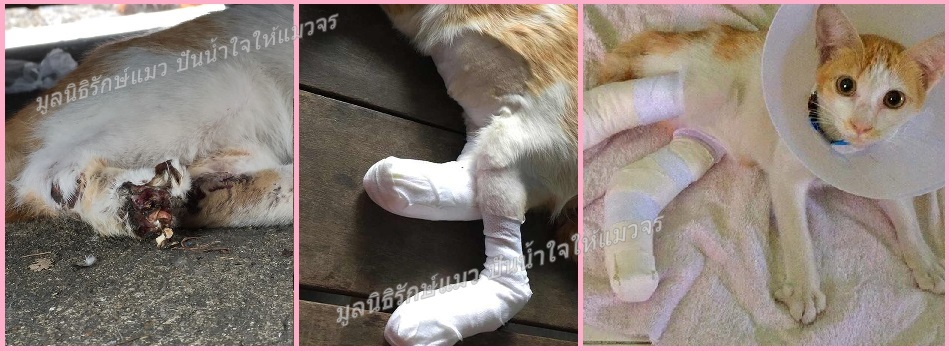 ที่เท้าซ้ายหลัง และแมวใช้ขาหลังทั้ง 2 ข้างเดินไม่ได้ เลยตัดสินใจนำน้องแมวเข้าไป